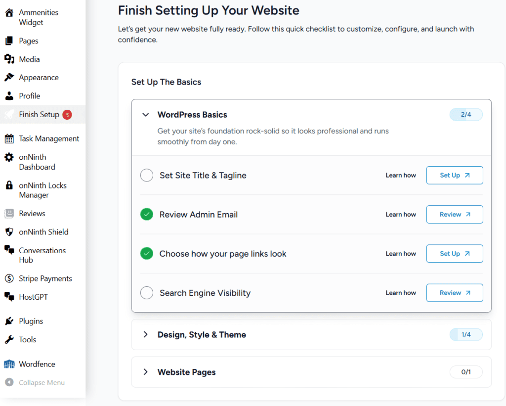 Click Start Building and let onNinth AI Builder assemble your site. In under a minute, you’ll get a real WordPress site with login credentials and instant access to your WordPress dashboard. Time from idea to website: Under 5 minutes.